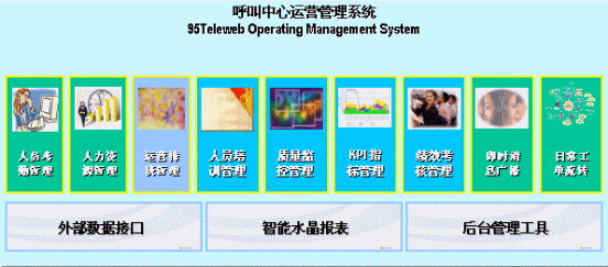 Teleweb-OMS運(yùn)營(yíng)管理系統(tǒng)共有11個(gè)模塊,涵蓋了動(dòng)態(tài)質(zhì)檢管理、培訓(xùn)管理、考勤管理、人力資源管理、話(huà)務(wù)預(yù)測(cè)與自動(dòng)排班、KPI管理、績(jī)效考核、部門(mén)間的需求單管理等各個(gè)環(huán)節(jié),并且提供了外部數(shù)據(jù)抽取功能和報(bào)表自動(dòng)生成功能。